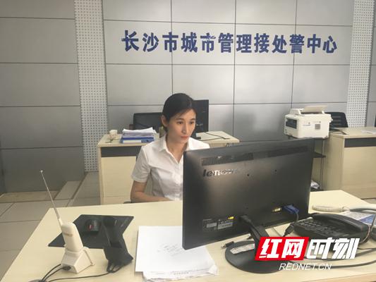 长沙市城市管理接处警中心工作人员马兰处理完市民投诉。